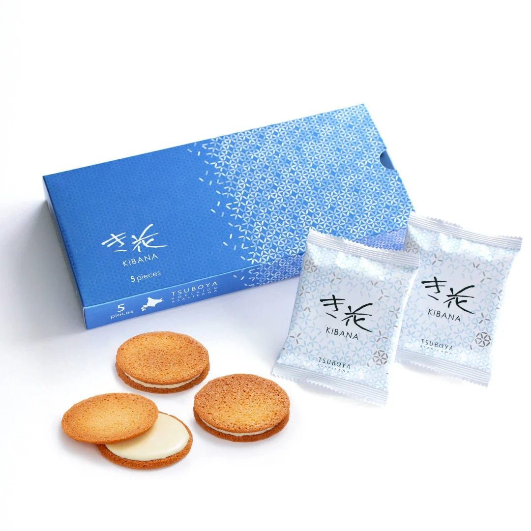‘기바나’는 아사히카와를 대표하는 시그니처 디저트로, 화이트 초콜릿을 아몬드 갈레트 사이에 넣어 만든 고급 과자입니다.