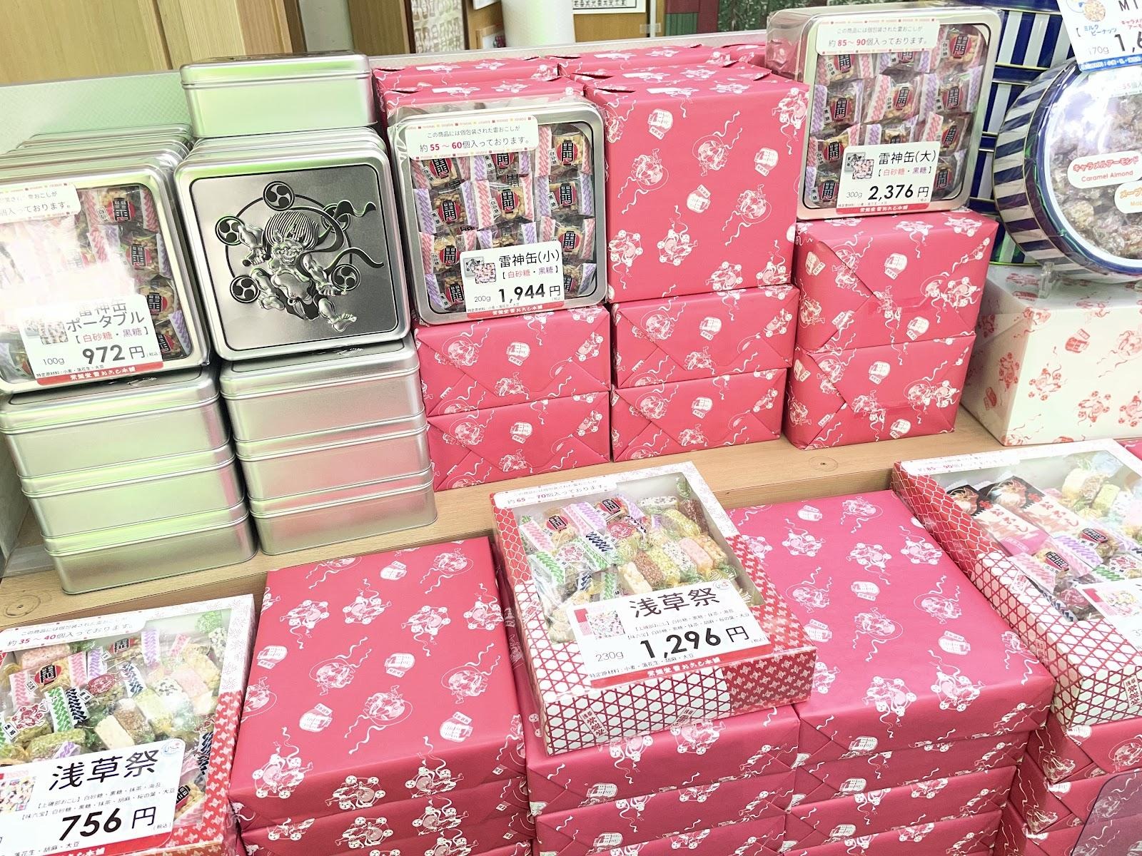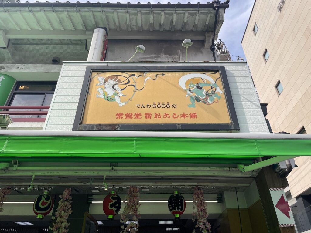 카미나리몬 바로 옆에 있는 토키와도 카미나리 오코시 본점(常盤堂 雷おこし本舗)은 창업 200년 이상의 역사를 가진 가게입니다. 흑설탕, 땅콩, 참깨, 말차 등 다양한 맛의 카미나리 오코시가 갖춰져 있습니다. 시식을 하면서 취향에 맞는 맛을 찾아볼 수 있는 가게입니다.