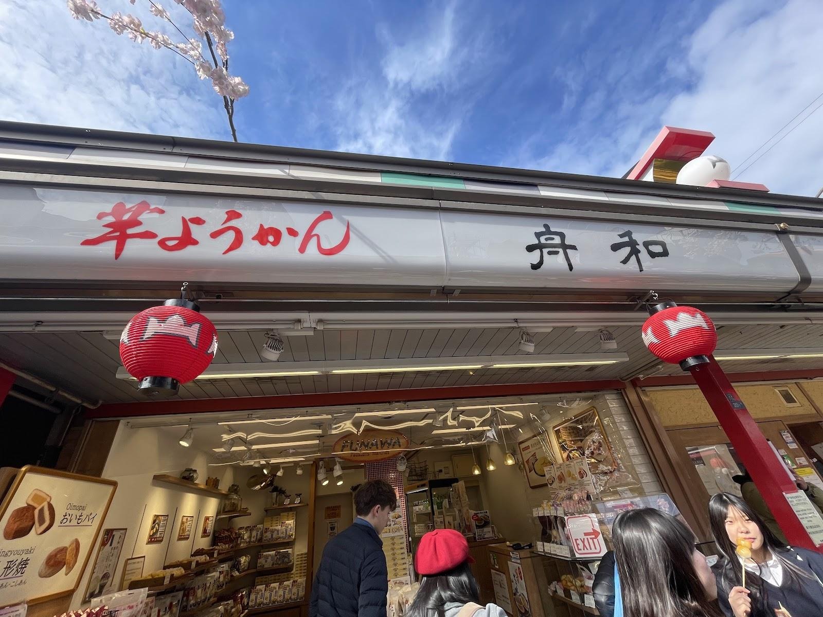 나카미세 거리 안에 있는 이모 요우칸 후나와(芋ようかん 舟和)는 일본에서 유명한 전통 일본 과자 가게 입니다.