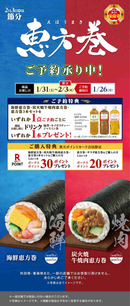 2026년의 절분도, 각 편의점에서 개성 넘치는 에호마키를 판매할 예정입니다. 기본 상품부터 콜라보 상품까지, 놓치지 마세요!