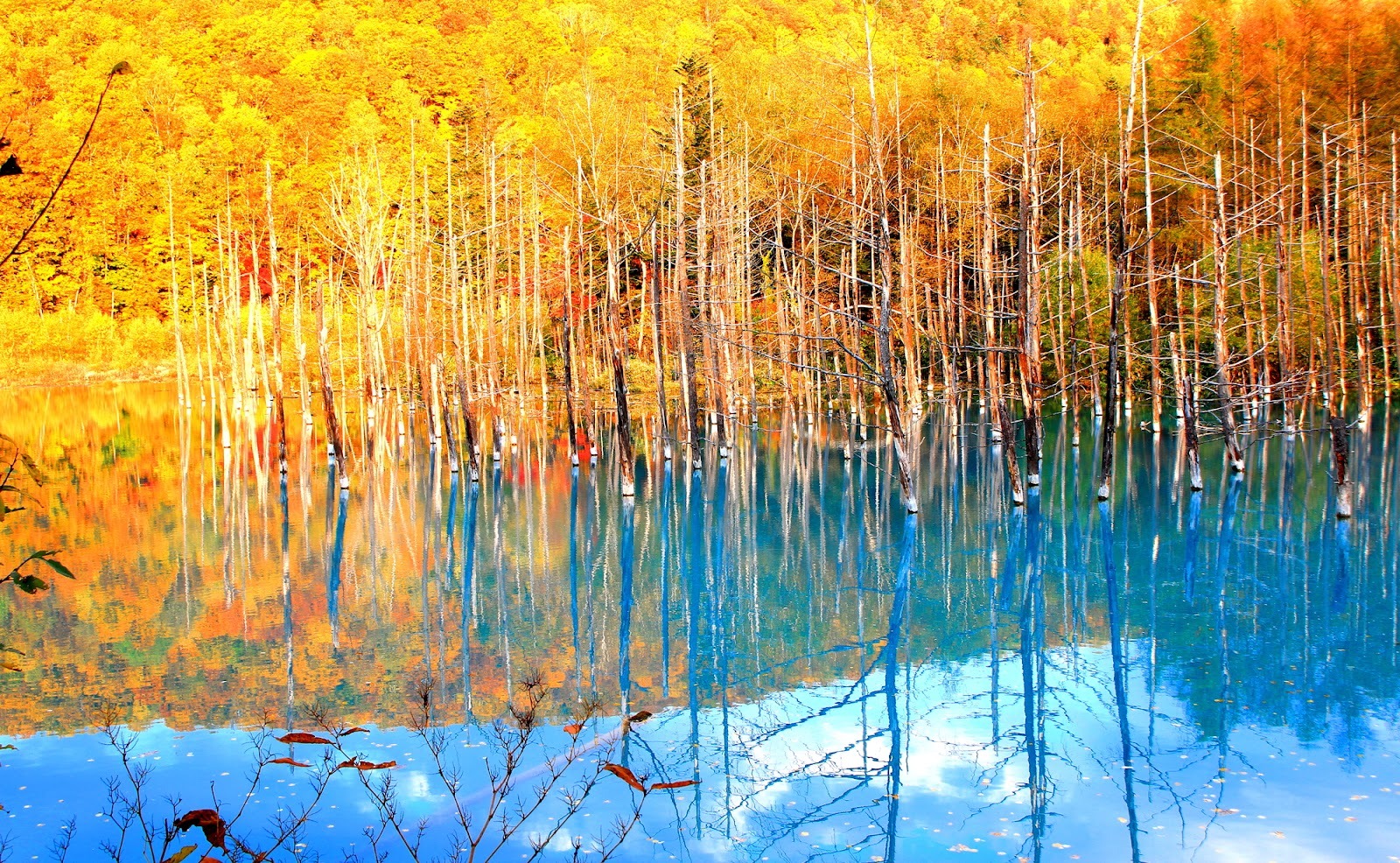 비에이(美瑛)와 후라노(富良野) 언덕지대에서는 붉고 노랗게 물든 나무들과 펼쳐진 푸른 하늘의 대비가 아름다워 드라이브나 사이클링에 최적의 시즌입니다.