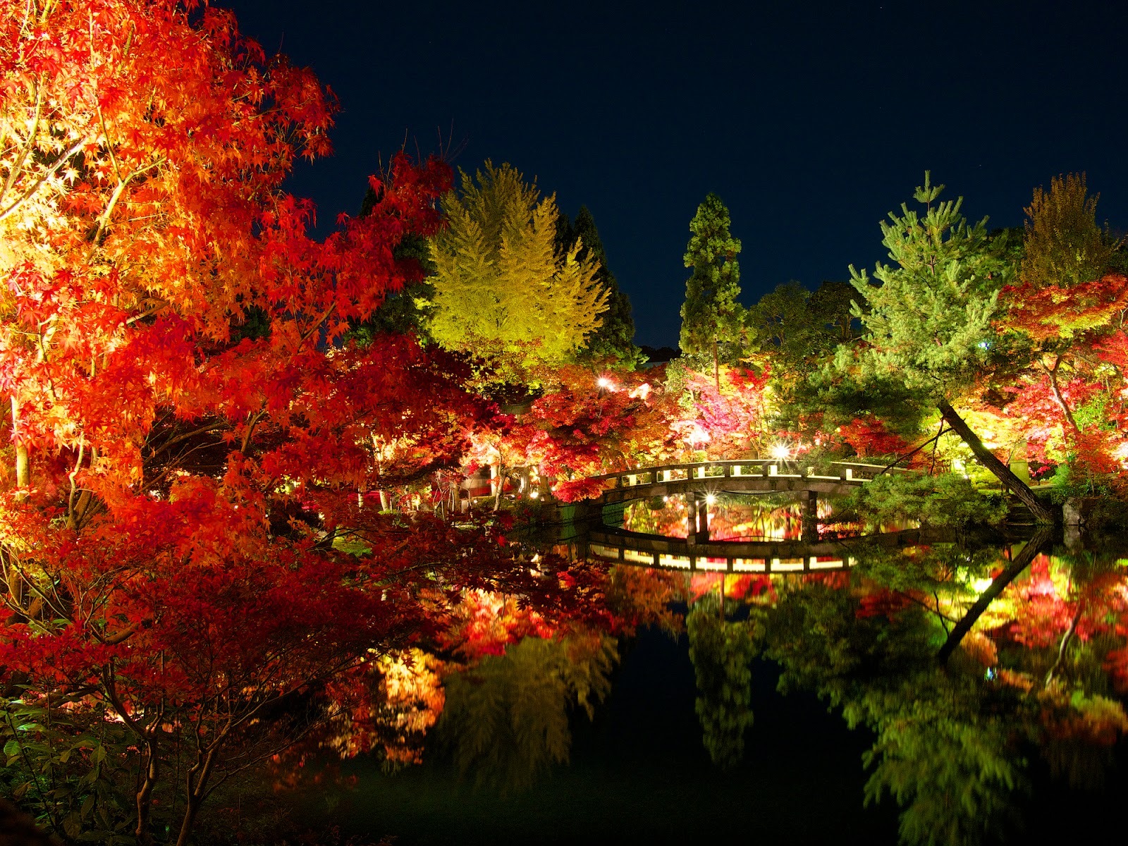 라이트업을 하는 시설도 많아, 밤의 단풍은 낮과는 다른 환상적인 분위기를 맛볼 수 있습니다.