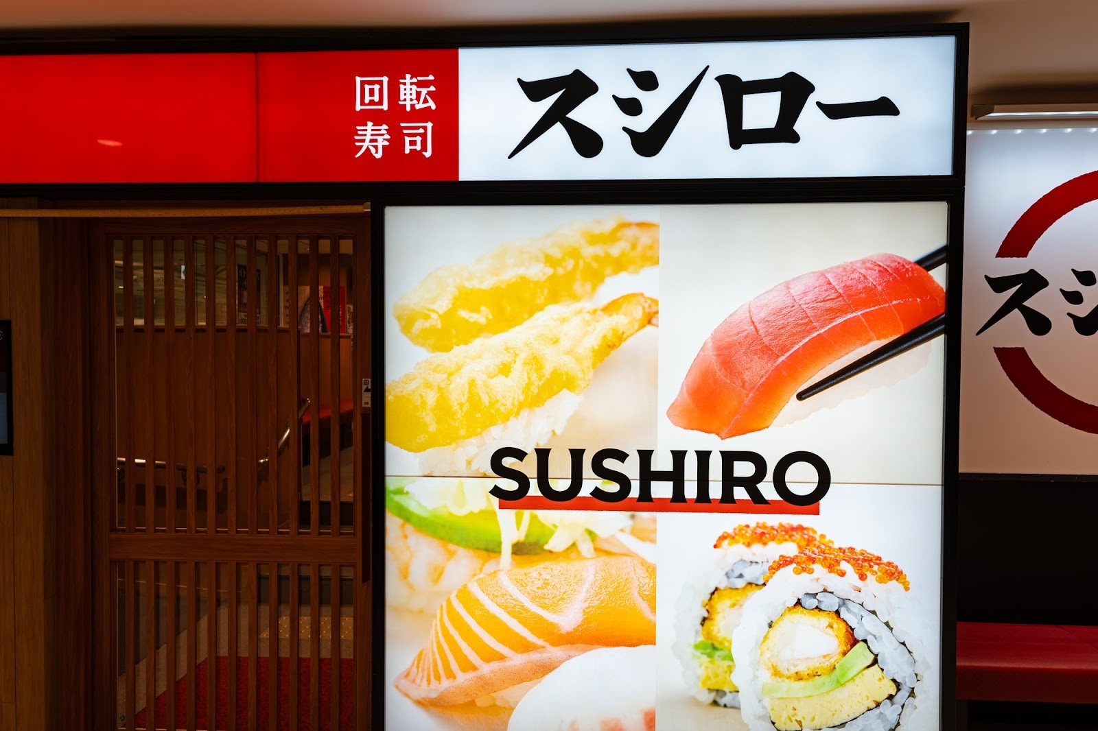 스시로는 일본 전국에 600개 이상의 매장을 가진 업계 최대 회전초밥 체인 매장입니다. 가장 큰 특징은 메뉴의 다양성과 재료의 퀄리티입니다. 참치 하나만 해도 아카미, 주도로, 아부리 등 다양한 부위를 갖추고 있으며, 사이드 메뉴와 디저트도 본격적입니다.