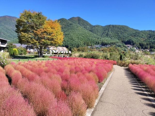 봄에는 튤립과 시바자쿠라(잔디벚꽃), 여름에는 라벤더, 가을에는 코키아와 단풍 등 사계절의 꽃들이 후지산을 배경으로 만발한 절경을 보여줍니다.