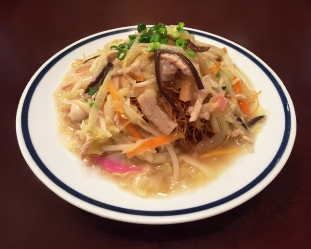 짬뽕과 함께 나가사키의 두 가지 간판 메뉴로 꼽히며, 바삭한 식감과 고소한 소스의 조화가 매력적입니다.