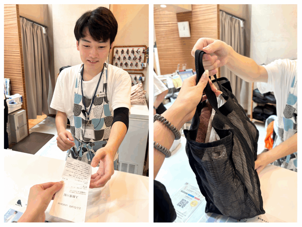 타월이나 실내복을 렌털하고 싶다면, 안내 데스크에서 입장 확인증을 보여주면 바로 준비해 줍니다.