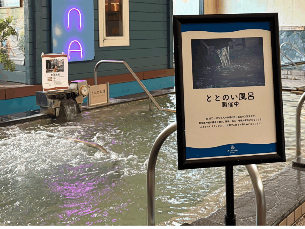 수온은 약 16°C로, 제가 방문했을 때는 박하(멘톨)가 들어간 냉탕이어서 상쾌함이 배가되었습니다.