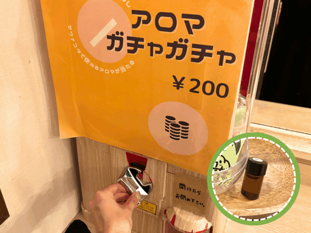 탈의실 한쪽에는 캡슐 자판기가 설치되어 있어, 10종류가 넘는 아로마 오일 중 어떤 향이 나올지는 뽑아보기 전까지 모릅니다.