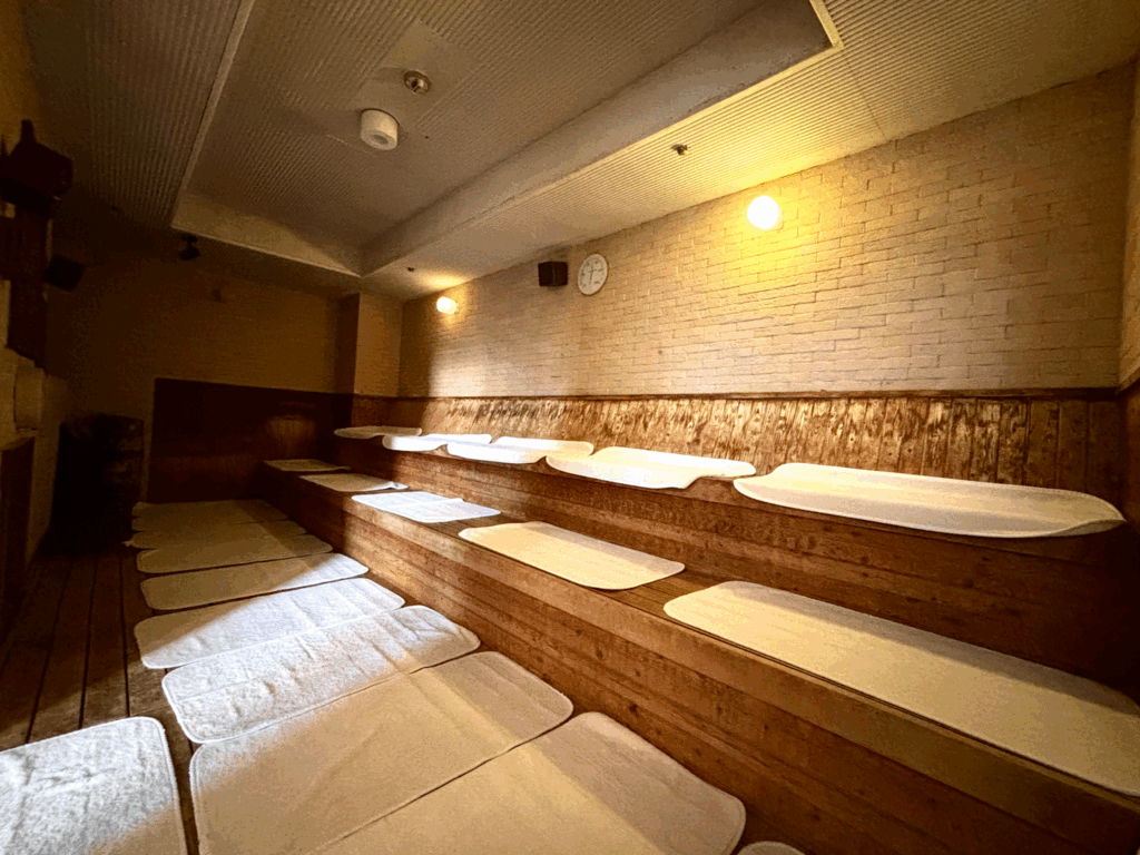 이곳의 온도는 약 80°C(남성 사우나실은 88°C)로 설정되어 있으며, 1시간마다 강력한 오토 로울류가 작동해 몸 전체가 순식간에 뜨거운 열기로 감싸집니다.