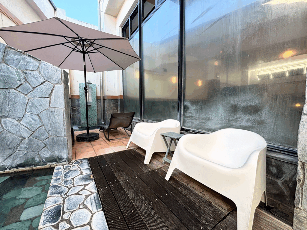 노천탕에서는 간토 지역의 명탕 ‘하쿠주노유(白寿の湯)’에서 운반된 온천수를 즐길 수 있습니다.