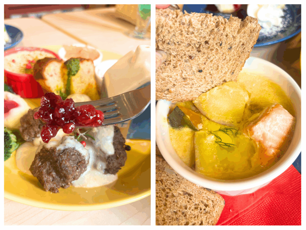 은은한 향신료가 감도는 촉촉한 수제 미트볼은 링곤베리 잼과 함께 한 입 — 고기의 풍미와 잼의 새콤달콤함이 완벽한 조화를 이룹니다!