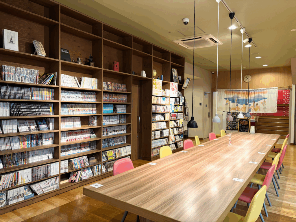 ‘라이브러리 스페이스’에는 인기 만화와 잡지, 서적이 약 1만 권, 그리고 두 명 이상이 함께 즐길 수 있는 보드게임이 약 100종류나 준비되어 있습니다!