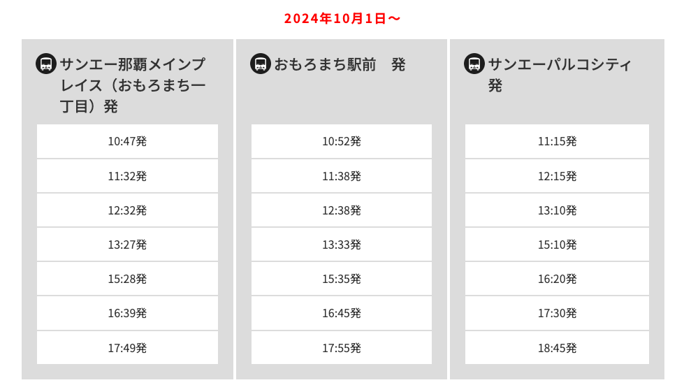 유이레일(ゆいレール)을 이용할 경우 오모로마치역(おもろまち駅)에서 하차한 뒤, 무료 셔틀버스를 이용하면 편리하게 이동할 수 있습니다.