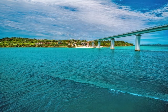 길이 약 2km의 대교 위에서 바라보는 바다 색은 오키나와에서도 손꼽히는 절경으로, 맑은 날에는 하늘과 바다의 경계가 보이지 않을 정도입니다.