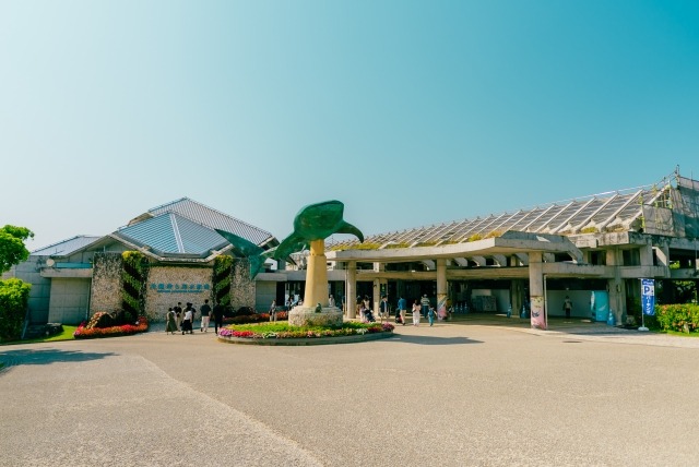 나고시(名護市) 북쪽의 모토부정(本部町) 해양박공원(海洋博公園) 안에 위치해 있으며, 고래상어와 만타가 여유롭게 헤엄치는 ‘쿠로시오의 바다(黒しの海)’ 대형 수조는 꼭 봐야 할 하이라이트입니다.