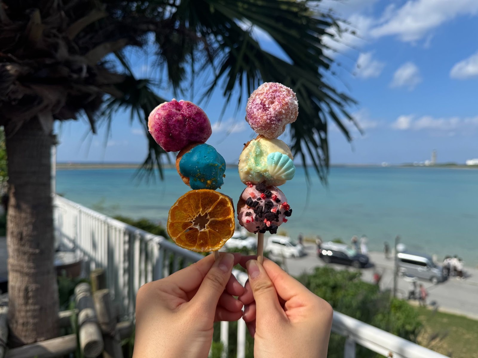 1~3개 주문 시 꼬치에 꽂아 아이스크림처럼 제공되며,바다를 배경으로 촬영하면 SNS용 사진으로 손색이 없습니다.