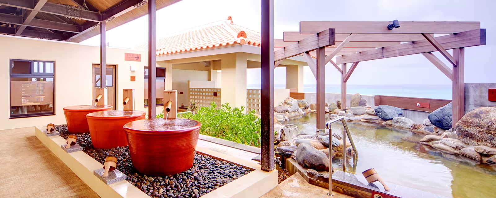 실내탕, 노천탕, 사우나까지 갖추고 있으며,특히 노천탕에서는 비행기가 이륙하는 모습과 동중국해로 지는 석양을 동시에 감상할 수 있어 오키나와에서만 가능한 특별한 온천 경험을 즐길 수 있습니다.