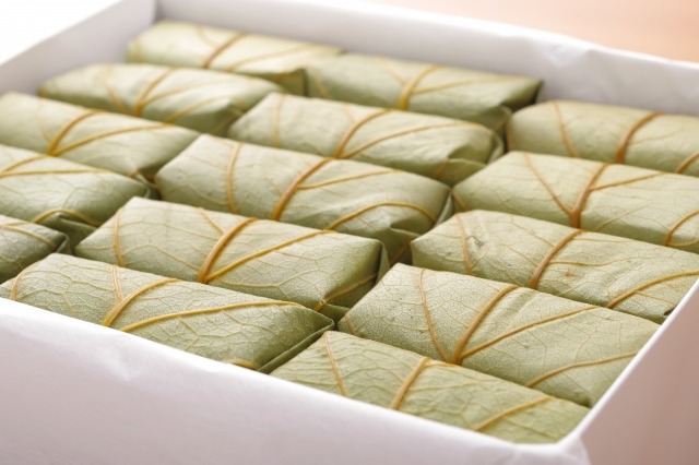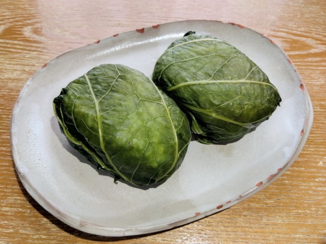 메하리 스시는 쿠마노 지역에서 태어난 향토 요리로, 커다란 갓잎으로 밥을 감싼 큼직한 주먹밥입니다.