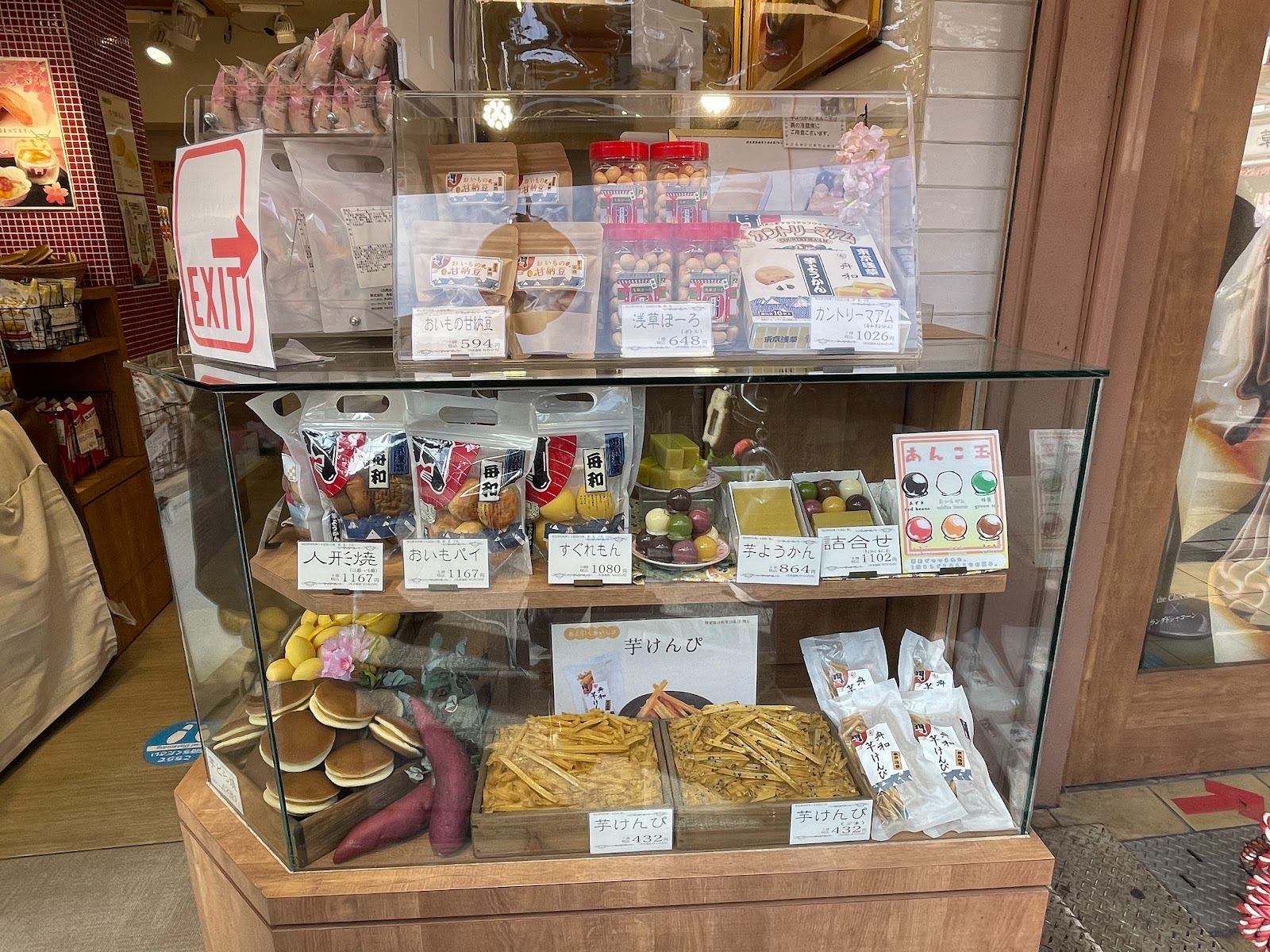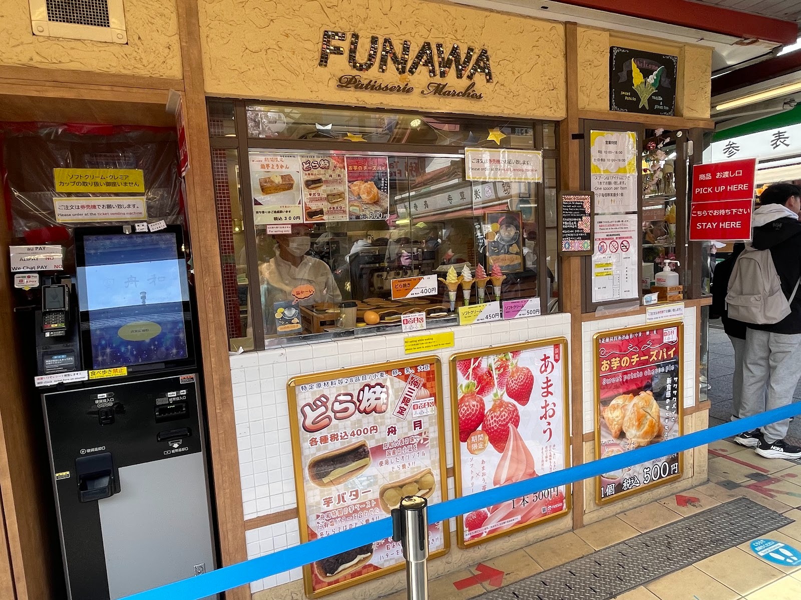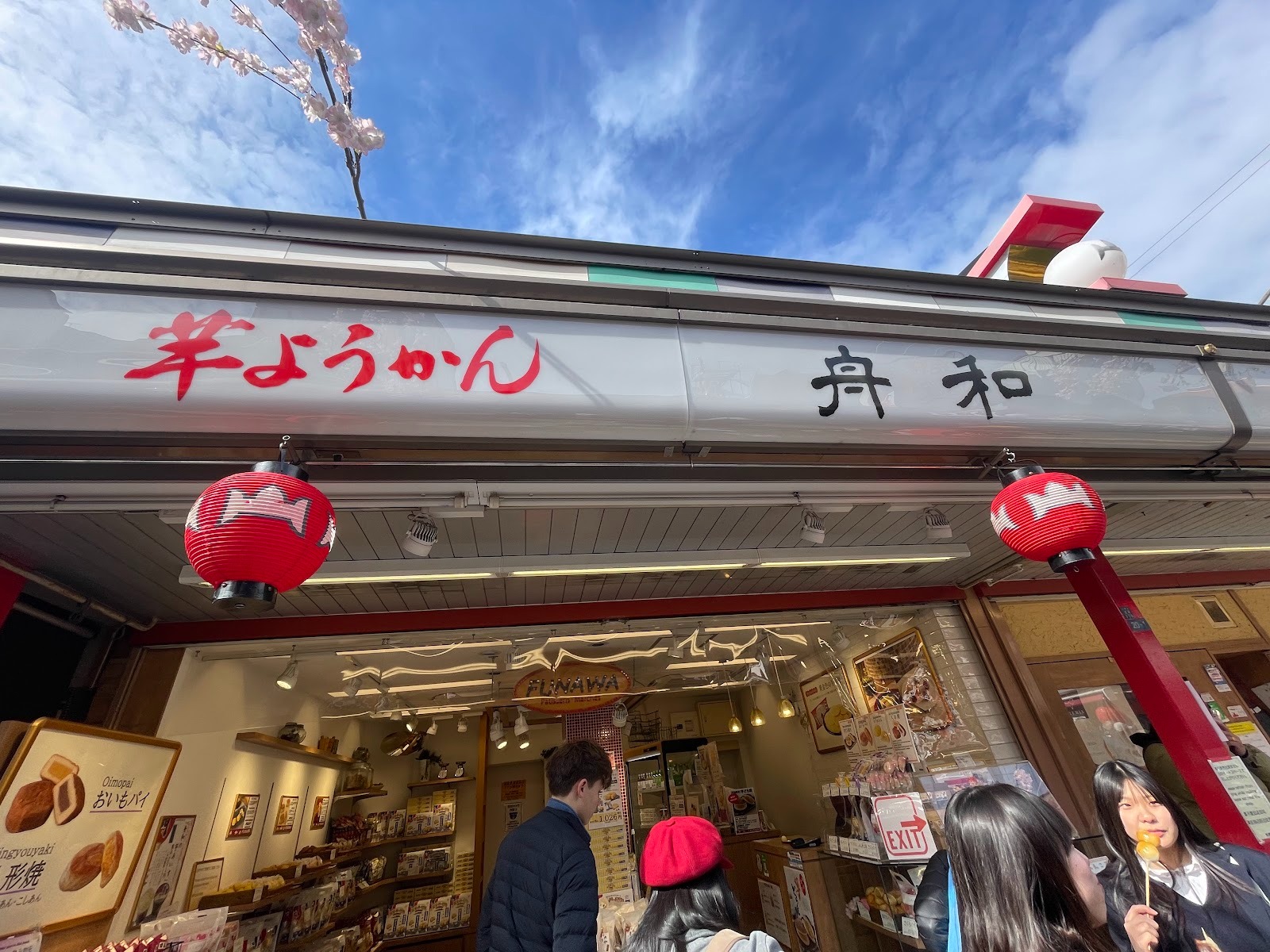仲見世通內的「芋羊羹 舟和」是日本知名老字號和菓子店。除了伴手禮,店內也販售可現場享用的甜點,例如以地瓜製作的銅鑼燒、起司派及冰淇淋等。