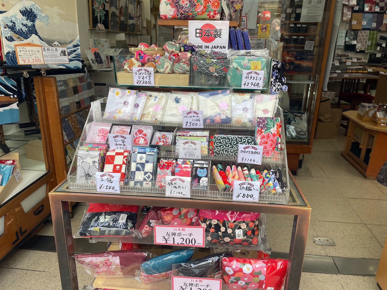 手巾材質薄,原本是日常生活用品,但現在也很受歡迎,既可作為家居擺飾,也可作為禮物。扇子除了在炎熱季節方便使用外,外觀精美,即便不用也能作為旅行紀念。束口袋則方便收納小物,像是飾品或美妝品也能放入。