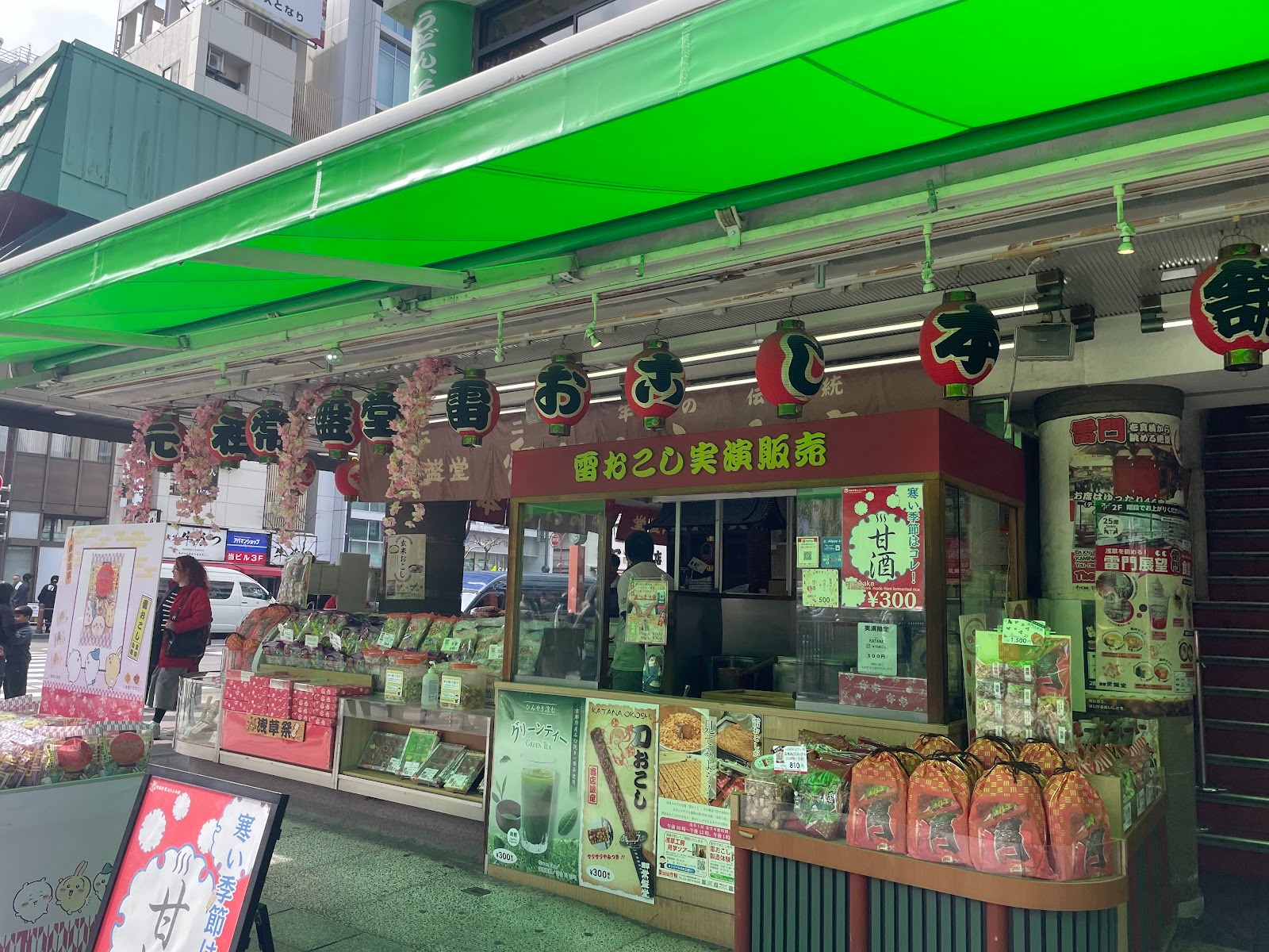 雷門旁的「常盤堂 雷OKOSHI本舗」是一家創業超過200年的老店,販售黑糖、花生、芝麻、抹茶等多種口味的雷OKOSHI。店內可試吃,邊品嚐邊挑選喜歡的口味。
