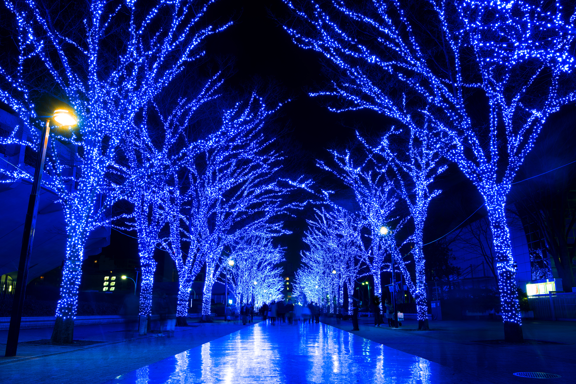 日本三大人氣燈飾各具特色,其中最著名的「青之洞窟 SHIBUYA」以深藍燈海打造出浪漫步道,是東京冬季必訪打卡地點。關西代表的「大阪光之饗宴」則以街道整體燈飾為特色,御堂筋燈光秀長達4公里(※),是日本最長級的燈道。若喜歡日本傳統風情,推薦 京都美山雪燈廊。茅葺屋頂在白雪覆蓋下點亮柔和燈光,彷彿走進日本昔日農村的冬夜。