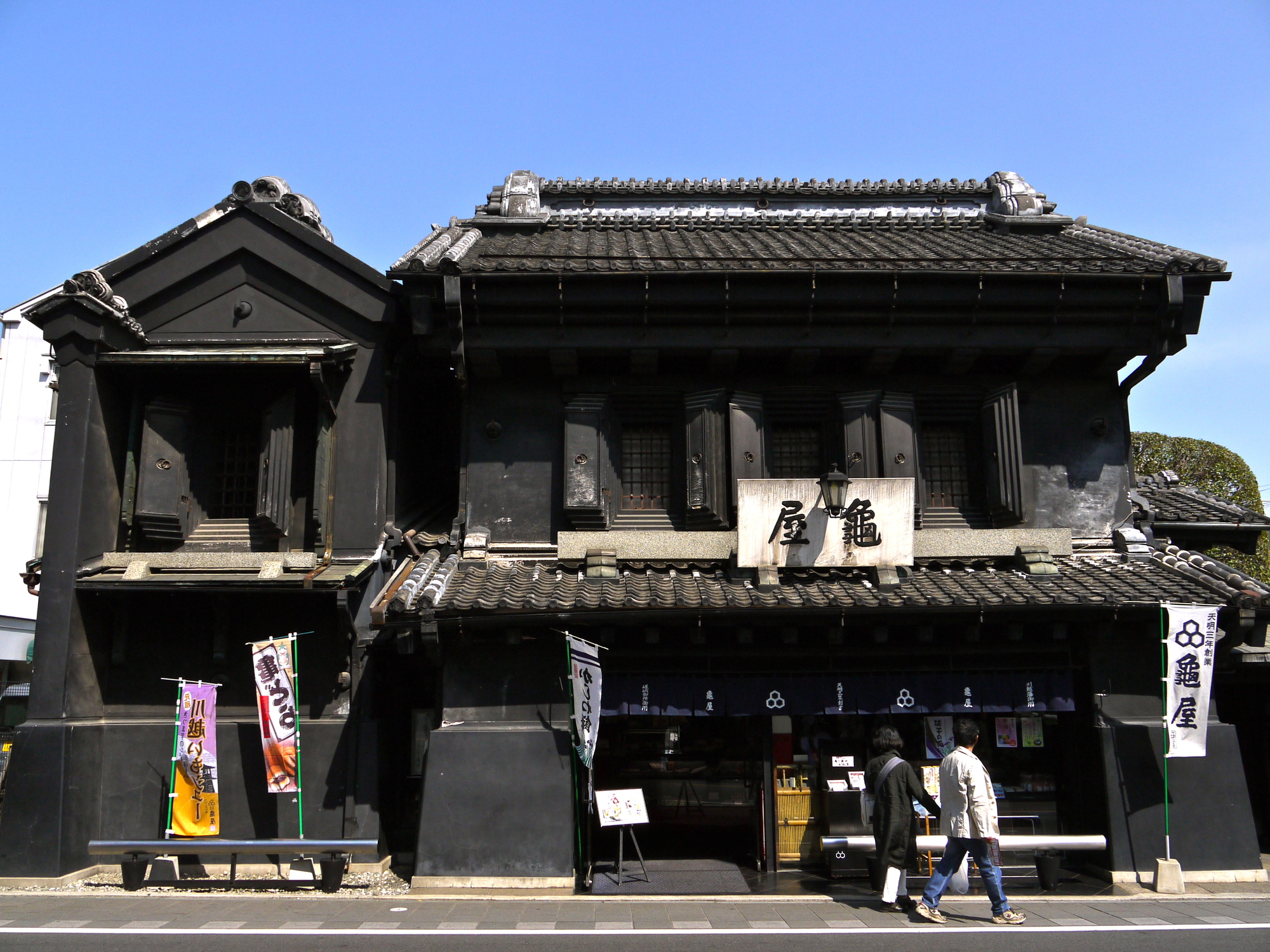 創立於天明三年(西元1783年)(※)的『龜屋』,是川越歷史最悠久、深受在地居民喜愛的和菓子老舖之一,至今已陪伴這座城市走過超過兩個世紀。龜屋長年堅持傳統製法,將日式點心的細膩與溫度,完整保留下來。店內最具代表性的商品,包括外型仿照烏龜甲殼設計的「龜最中」,以及以川越名產地瓜為靈感、造型討喜的「黃金地瓜」。此外,還有由職人一枚一枚親手烘烤完成的銅鑼燒「龜銅鑼」,口感紮實、甜度恰到好處。