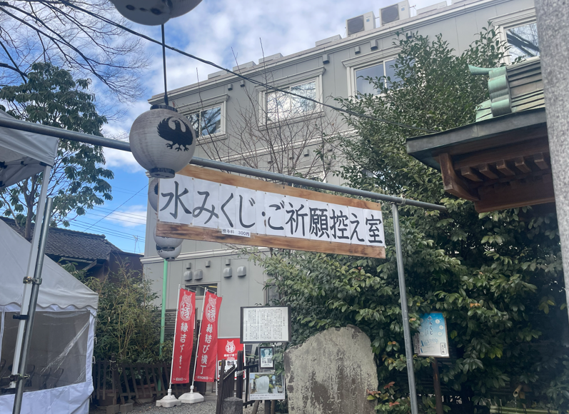 將御籤浸入水中後,圖案與文字便會浮現。即使抽到凶也請放心,只要將御籤帶回社務所,即可獲得御守。