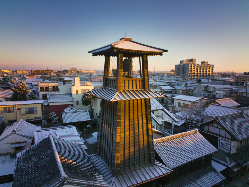 它每日固定在早上6點、中午12點、下午3點和傍晚6點鳴響,入選為「日本音風景100選」(※)。在時之鐘敲響時,漫步於周圍古老的街道上,彷彿真的能讓人體驗到江戶時代的「8號時光」(八ッ時,即下午2時頃)的慢活節奏。時之鐘不僅是川越的文化財產,也是最熱門的拍照打卡點。