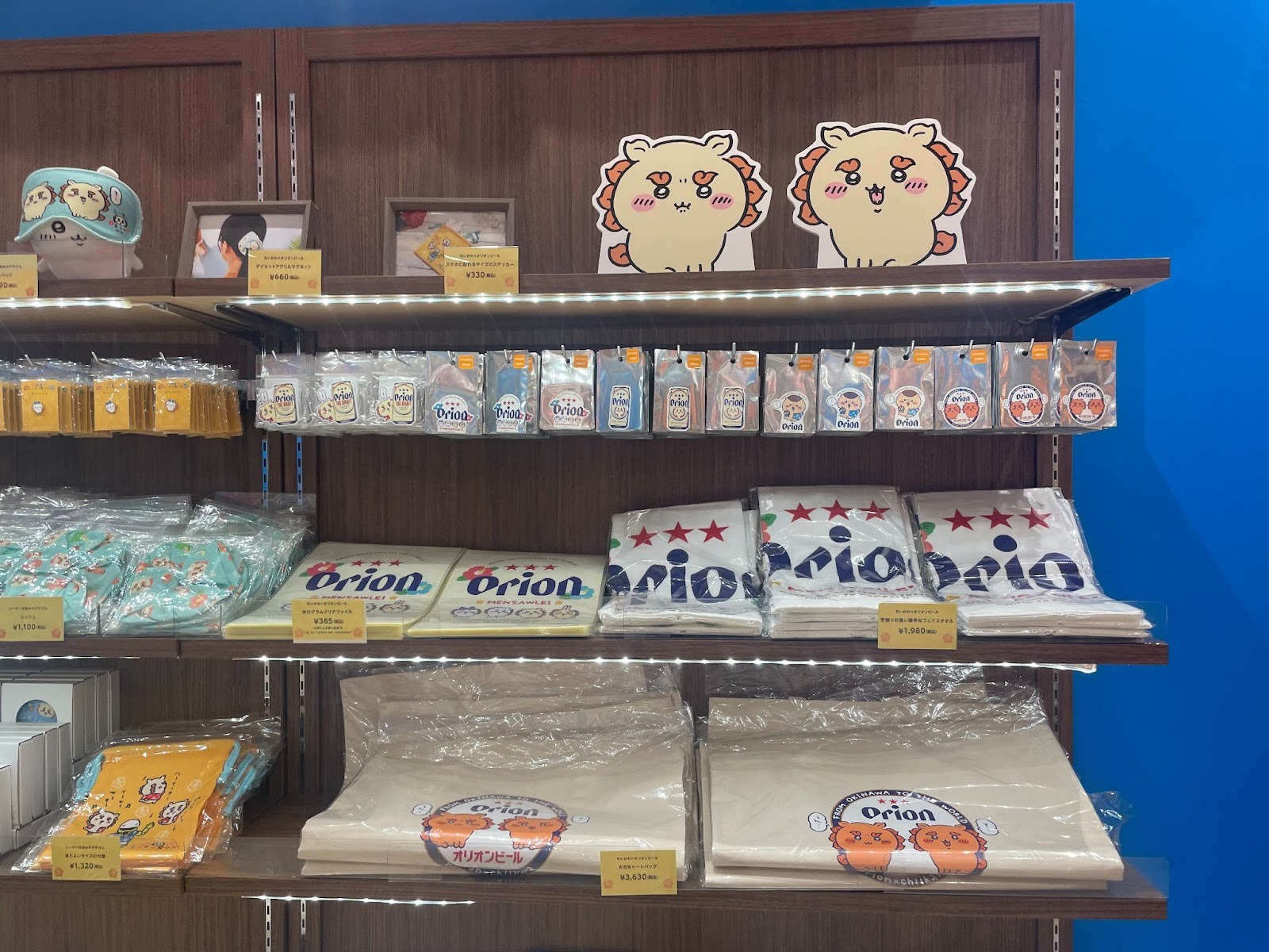 與當地人氣啤酒「Orion 奧利恩啤酒」的夢幻聯名!推出了啤酒罐造型的壓克力立牌、印有標誌的生啤酒杯,以及啤酒圖樣的 T-shirt 等多款充滿沖繩風情的獨特商品。這正是沖繩才買得到的珍貴單品,送禮自用兩相宜。