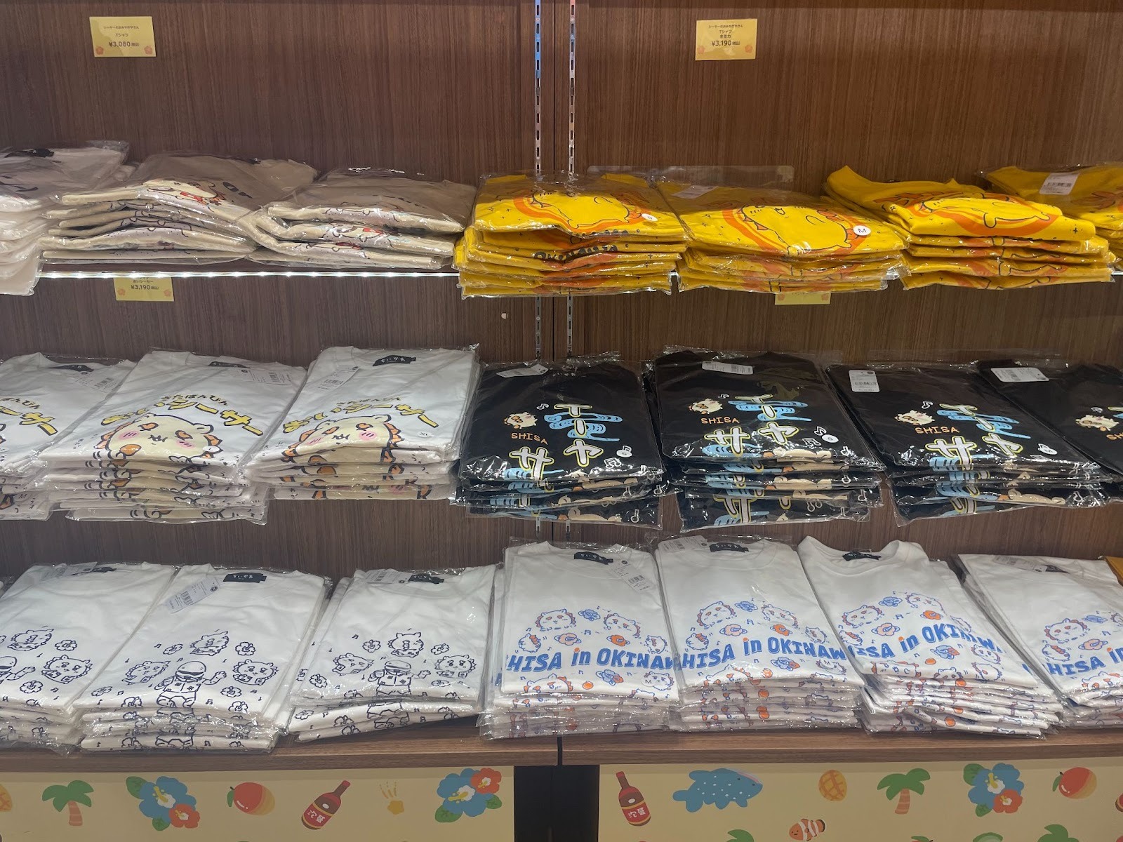 沖繩限定 T-shirt 的圖案非常豐富,包含西薩造型的吉伊卡哇們在海邊嬉戲的模樣,或是繪有沖繩方言的幽默設計。