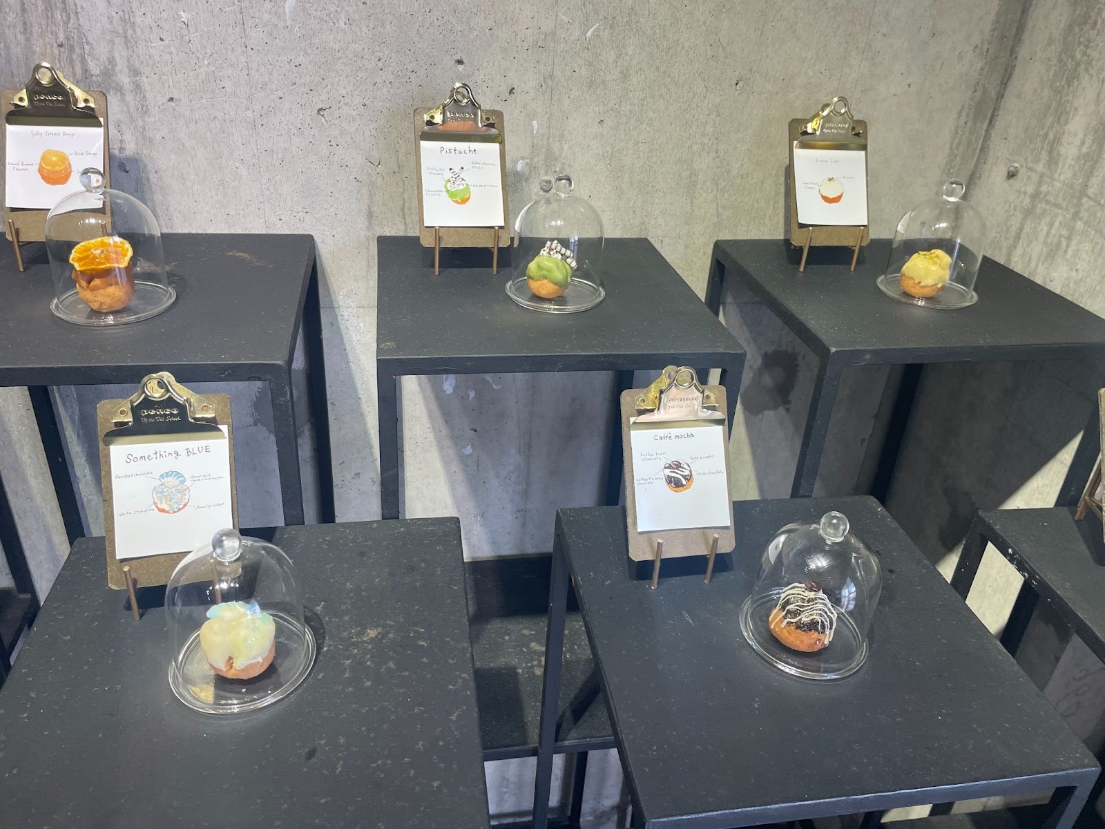 店內的甜甜圈如精品櫃般陳列,名稱與說明皆附有英文,不懂日文也能放心挑選。
