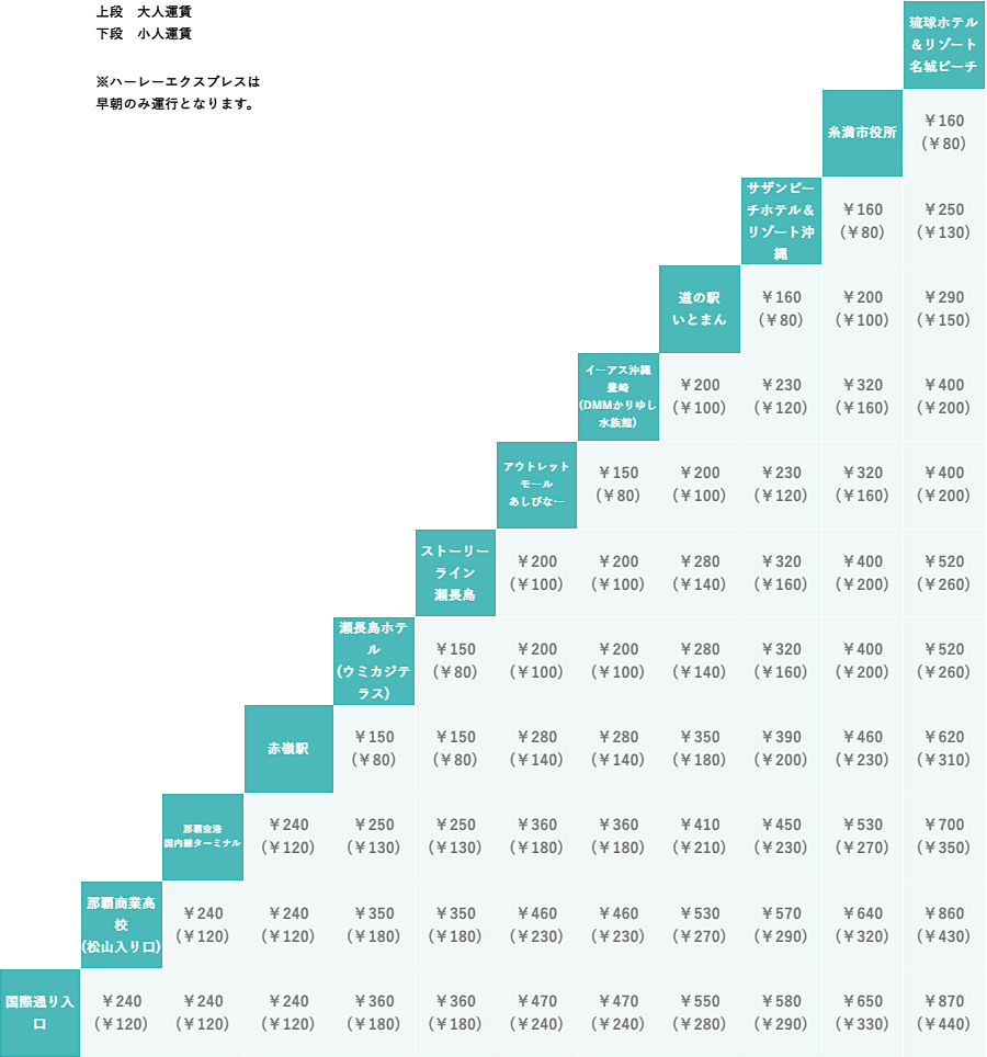 平日及週末假日皆有運行,且會行經水族館及購物中心(Outlet)等地,方便順道遊覽 Umikaji Terrace 周邊。
