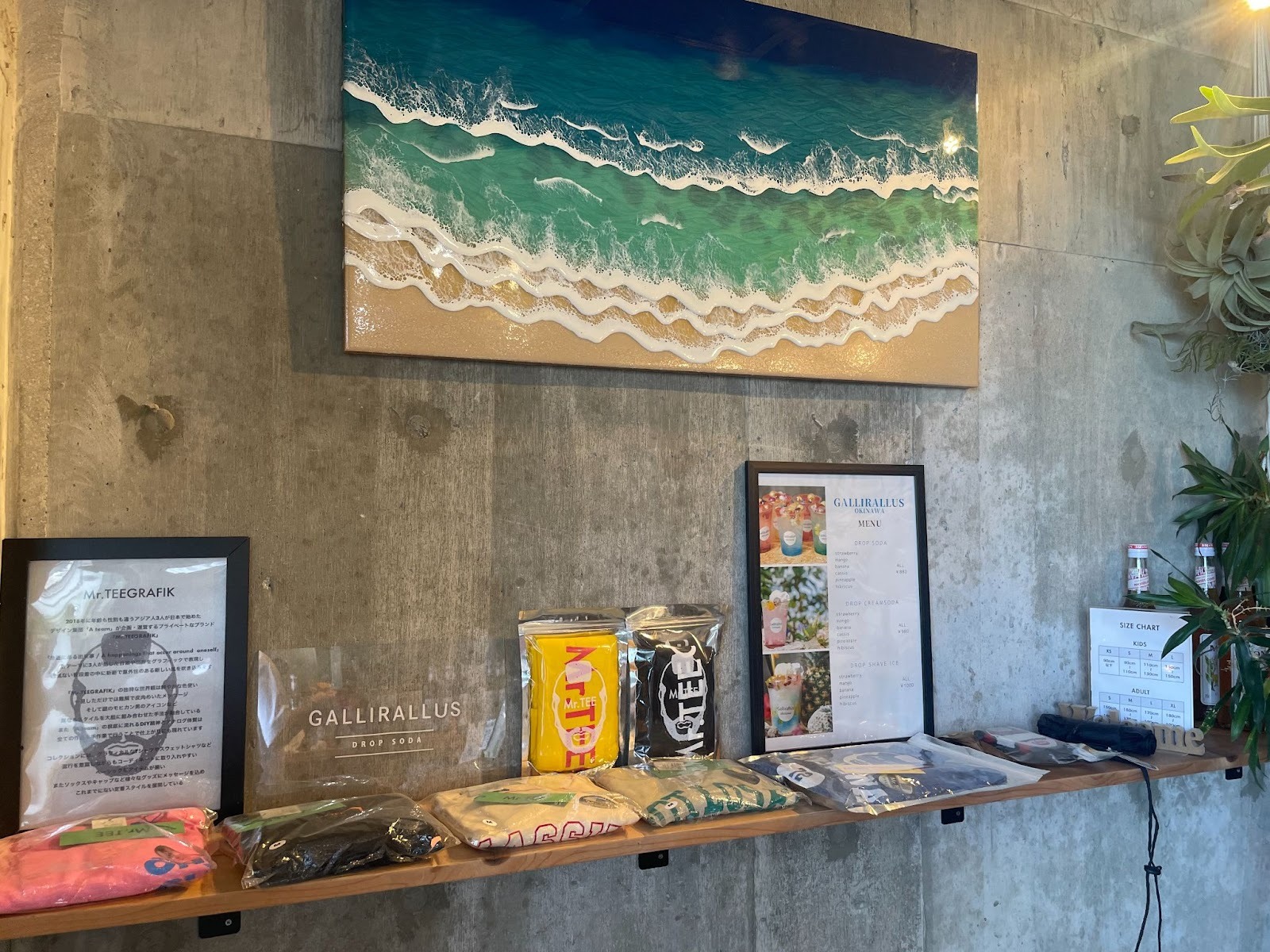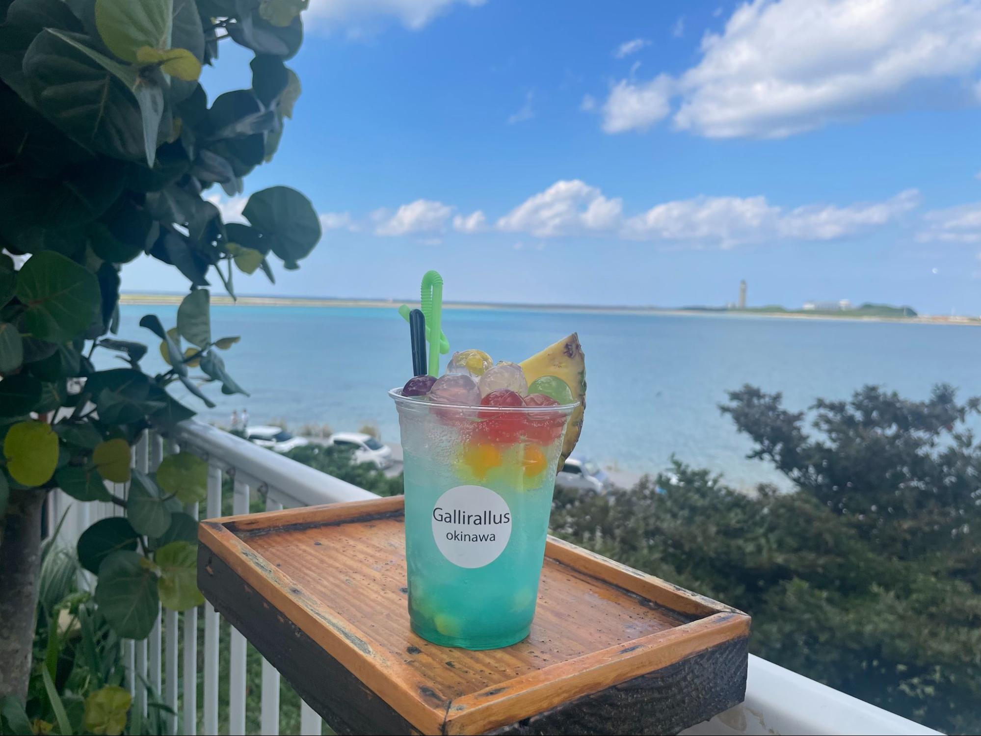 Gallirallus 是一家能品嚐到充滿沖繩風情的南國水果飲品的咖啡廳。杯子裡裝滿了色彩繽紛的水果與食用花(指可供食用的花卉),這種極具南國氛圍的繽紛氣泡飲非常受歡迎。