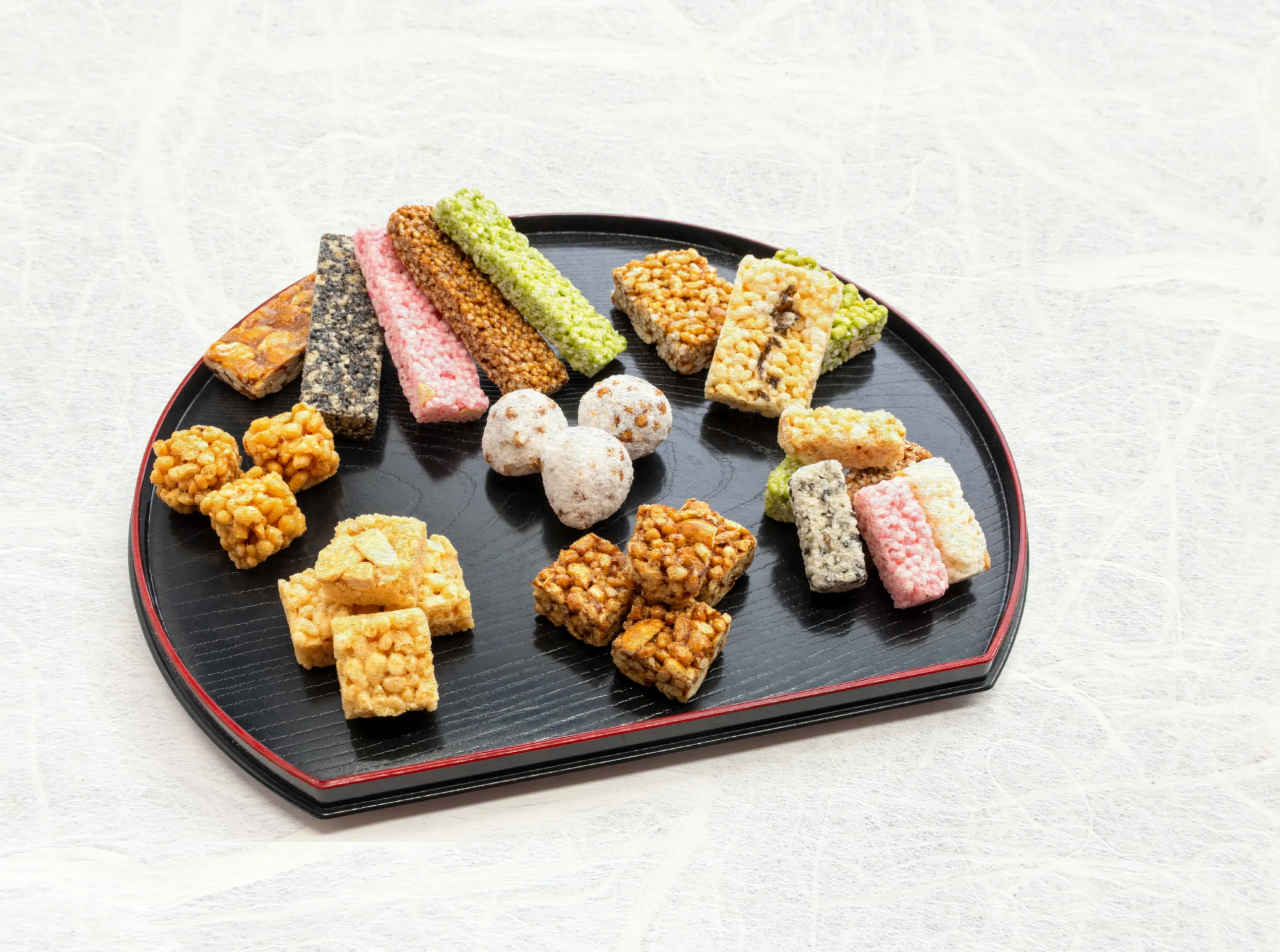 「雷門米香(Kaminari Okoshi/雷おこし)」是代表淺草的日式點心。這是一種用米製成的香脆米香,用糖蜜凝固而成,其輕盈口感和淡淡甜味令人著迷。