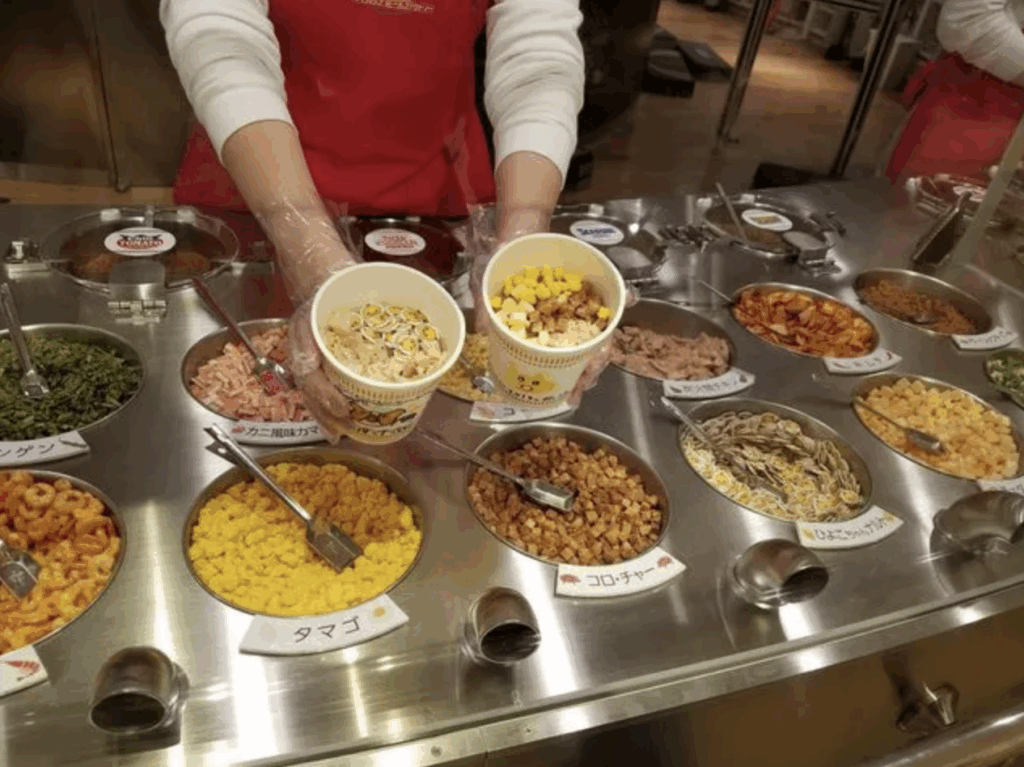在『合味道紀念館(CupNoodles Museum)』首先參觀展示區,了解安藤百福發明即食麵的歷史,然後可體驗「My CUPNOODLES Factory」(自己設計杯麵)或「Chicken Ramen Factory」(手作雞湯拉麵)活動。博物館開放時間為每天 10:00–18:00(最後入場 17:00)。入場基本票價是大人500日圓,高中生以下免費;而 “My CUPNOODLES Factory” 體驗需另付500日圓。