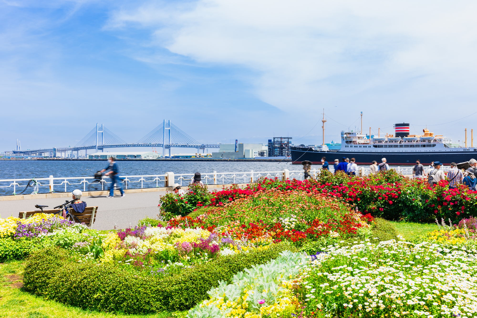 『山下公園』是橫濱最具代表性的海濱公園之一,沿著橫濱港延伸約700公尺(※),擁有海風、綠地和浪漫景致。公園內有知名的「紅鞋女孩像」、海鷗水兵的歌碑、玫瑰花壇以及停泊的氷川丸遊船,適合情侶約會、親子散步或攝影。由於是開放式公園,遊客可以自由進出、全天散策。此地是拍攝港口日景與夜景的絕佳場所,尤其傍晚時分,夕陽灑在港面,非常有氛圍。